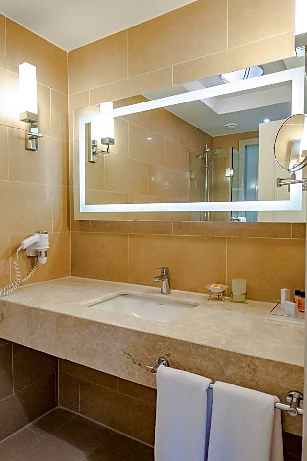 Vor Ort gibt es ein Restaurant, einen Außenpool (kostenlos), ein Spa (kostenlos), ein Türkisches/Dampfbad (kostenlos), eine Sauna (kostenlos), ein Fitnesscenter, kostenloses WLAN und eine 24‑Stunden-Rezeption. Zusätzliche Leistungen wie Privatparkplatz, Parkplätze am Hotel, Flughafentransfer und Tagungs-/Banketteinrichtungen sind gegen Aufpreis verfügbar, während die Zimmer über Klimaanlage, Schallschutz, Nichtraucheroptionen, Barrierefreiheit für Rollstuhlfahrer, Blick auf Sehenswürdigkeiten oder die Stadt, überlange Betten und Zugang per Aufzug verfügen.